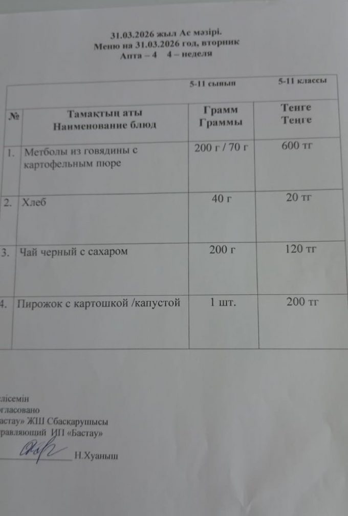 ас мәзірі 31.03.2026 ж