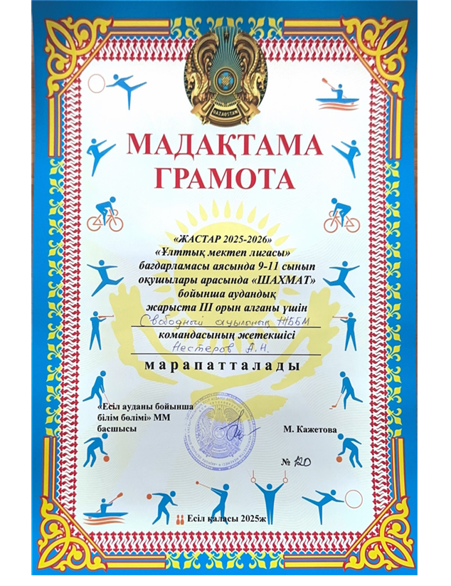 Коммунальное государственное учреждение «Общеобразовательная школа села Свободное отдела образования по Есильскому району управления образования Акмолинской области"