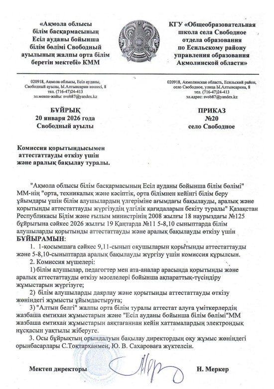 Коммунальное государственное учреждение «Общеобразовательная школа села Свободное отдела образования по Есильскому району управления образования Акмолинской области"
