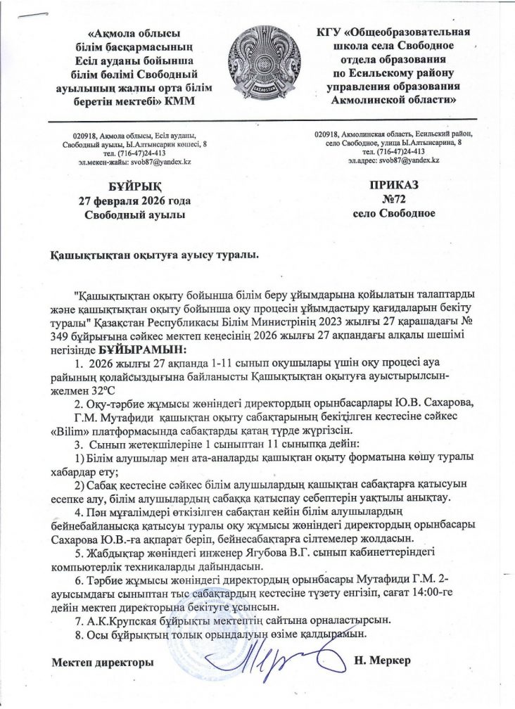 Коммунальное государственное учреждение «Общеобразовательная школа села Свободное отдела образования по Есильскому району управления образования Акмолинской области"