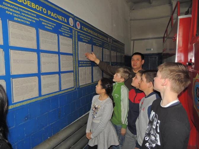 Далее детей ожидала экскурсия по служебным помещениям пожарной части. Остановились в учебном классе, где провели инструктаж по соблюдению правил пожарной безопасности на примерах пожаров. На вопрос «Что нужно делать при возникновении пожара?» ребята хором кричали: «Звонить в пожарную охрану по телефону 101 или 112». Все были удивлены, узнав, что с сотрудниками проводятся
